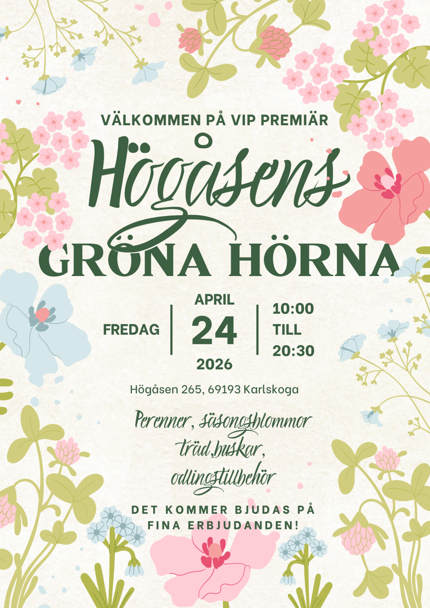 Okategoriserade Medlemsförmån Publicerad av: tradgardsforeningen 9 april, 2026 17:48 24 april. Trädgårdsföreningens medlemmar får en fin inbjudan! Filippa hälsar oss välkomna!