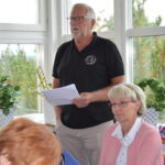 Under väntan på att maten skulle serveras gav ordförande Per Liliegren en återblick på hur klubben bildats och berättade om dess tidigare historia. Idén om en veteranbilsklubb väcktes av några deltagare i en mässa i Nobelhallen våren 1982 och i september hölls ett möte där en interimsstyrelse bildades med Bennie Fredriksson som första ordförande. Under föreningens första år var medlemsantalet 79 stycken, vilket kan jämföras med dagens 570…