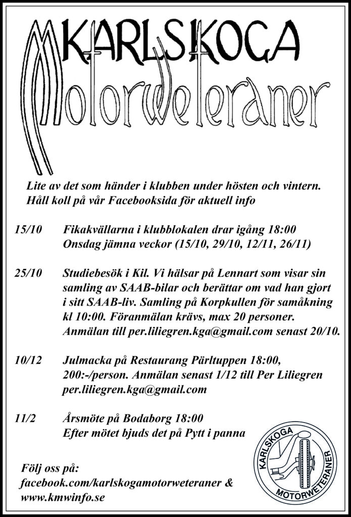 Info om kommande aktiviteter