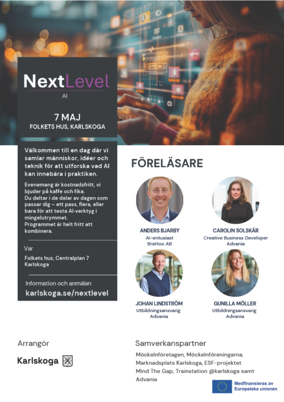 Samverkanspartners: Möckelnföretagen, Möckelnföreningarna, Marknadsplats Karlskoga, ESF-projektet Mind The Gap, Trainstation@karlskoga samt Advania